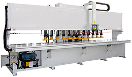 上・左・右=3方向にドリルユニットを搭載し、合計24本のドリルを装備可能。それらを高速で自動交換することにより、異径の穴あけやマーキング等の段取時間を大幅に削減、圧倒的な高速・高精度加工とコストダウンを達成しています。